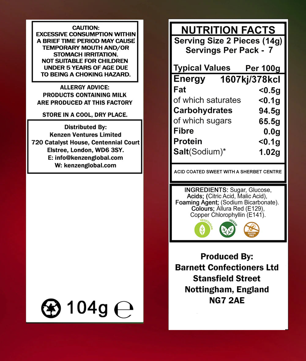 Egal ob Sie den Nervenkitzel suchen, gerne Herausforderungen mit Freunden annehmen oder einfach nur neugierig sind, Ihren Gaumen weiter herauszufordern, Barnetts Mega Sour ist DIE Süßigkeit für Sie.