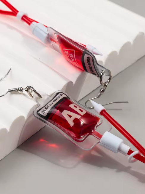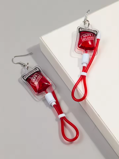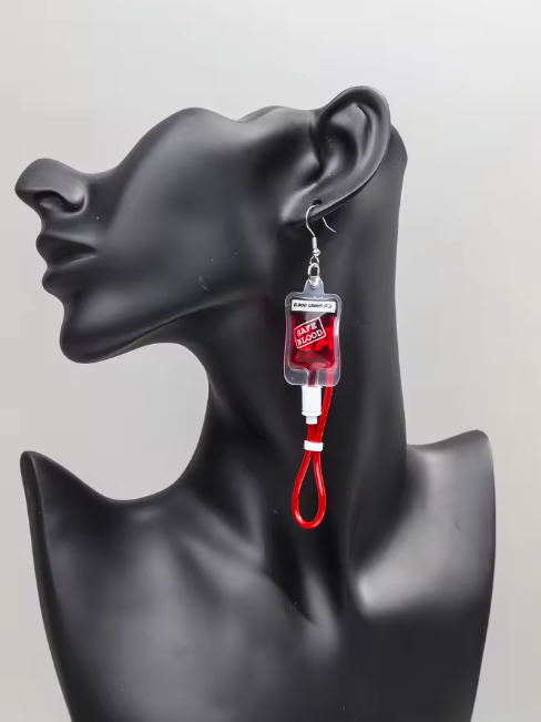 🩸 Blutbeutel-Ohrringe – Lustiges und originelles Accessoire