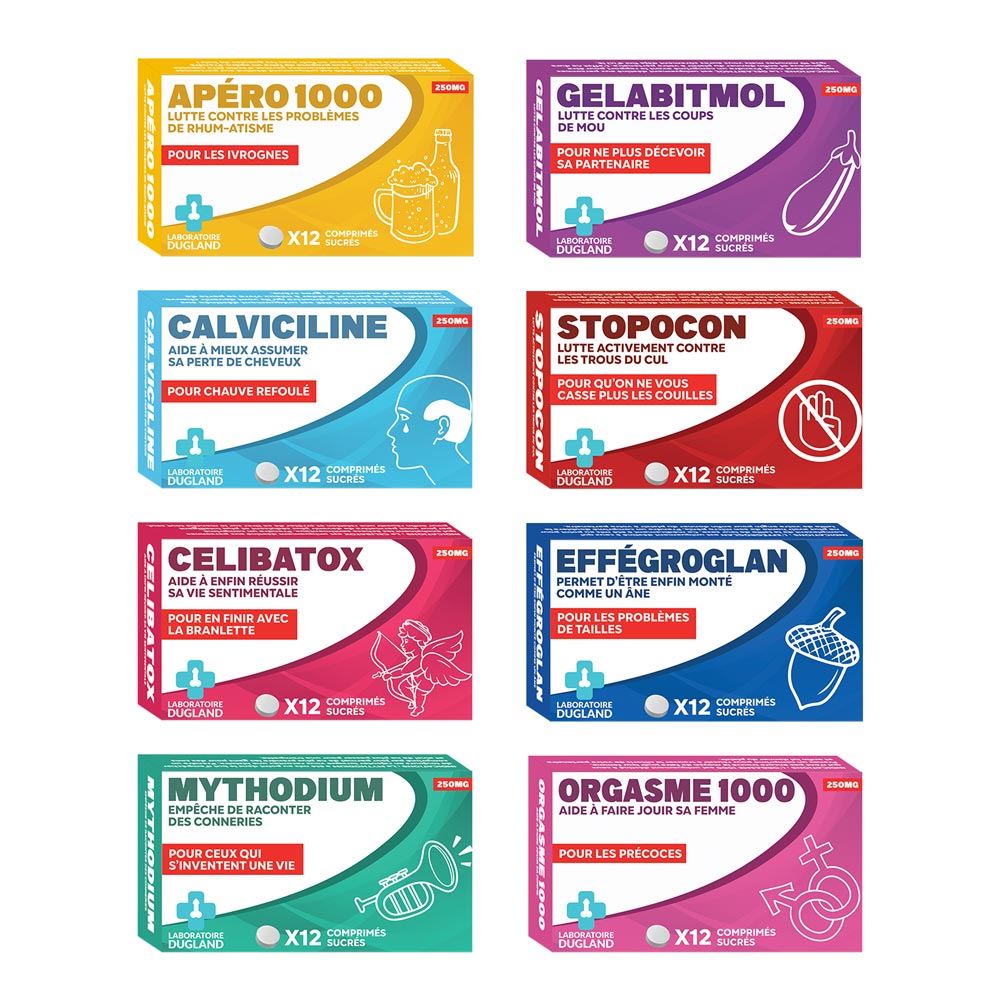 Pfefferminzbonbons im Pillenformat (15 Bonbons), präsentiert wie echte Medikamente... aber zum maßlosen Verzehr und mit viel Humor!
